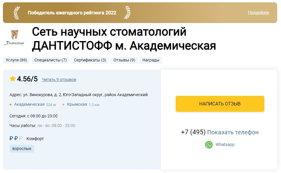 Это выделит вас среди конкурентов в списках, повысит доверие к клинике и увеличит количество обращений.